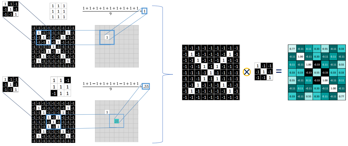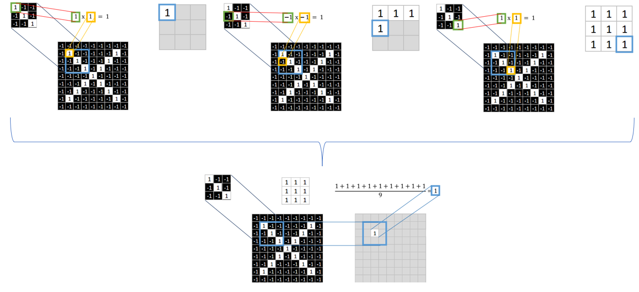 ConvNet이 작동하는 방식에 대해 좀 더 자세히 살펴보도록 하겠습니다. 먼저, 하나의 필터를 고릅니다. 선택한 필터와 동일한 크기의 범위에서 연산을 통해 필터의 가운데 위치에 연산해서 나온 값을 저장합니다.