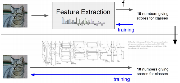 ConvNet이라는 별칭을 가지고 있는 Convolution Neural Network의 등장 이전에는 사진의 특징을 추출하고 추출한 특징을 기반으로 알고리즘을 만들었습니다. 하지만 ConvNet의 등장 이후 사진의 특징을 알고리즘 내에서 자동으로 추출하여 사용하기 시작했습니다. 특히, 직접 특징을 찾아서 추출하는 방식보다 더 좋은 성능을 발휘했기 때문에 연구자들은 특징을 추출하기보다는 딥러닝 알고리즘이 알아서 하는 방식을 더 선호하기 시작했습니다.