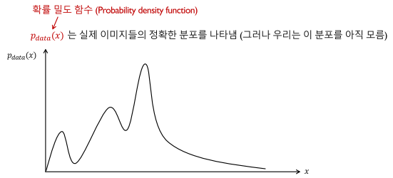 예를 들어, 이미지 데이터를 통해 확률 분포를 만들었다면 입력 데이터에 따라 위와 같은 확률분포가 생성될 수 있습니다. Dencity Model은 Implicit한 모델과 Explicit한 경우가 있습니다. Explicit한 경우 Dencity를 추정할 때 수식으로 명확하게 표현할 수 있습니다. 반대로 Implicit한 경우 추정할 때 사용한 수식을 깔끔하게 표현하지 못합니다. GAN에 사용되는 Dencity Model은 Implicit한 형태로 명확한 표현은 불가능하지만, 내부적으로는 존재하여 작동합니다.