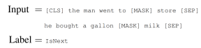 NSP는 다음과 같이 이어진 두 문장이 입력으로 주어질 때, [CLS]토큰을 통해 두 문장이 연속적인 문장인지 판별하는 학습방법입니다.